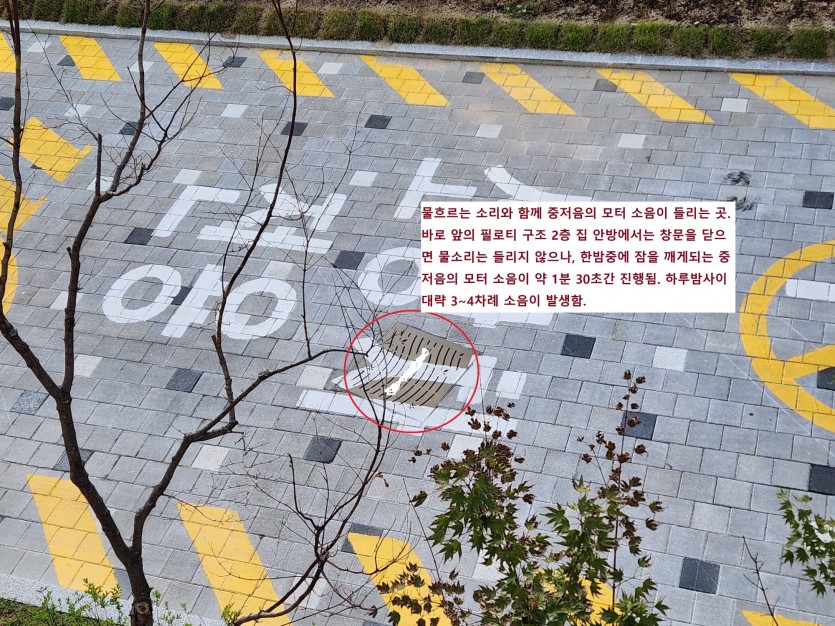 (1) 붙임의 사진처럼, 저희집은 필로티 구조의 2층이며, 안방 바로 앞 1층 마당에 맨홀이 있어, 소음이 들릴때는 맨홀에서 물흐르는 소리가 매우 심하게 들립니다. 그런데, 안방 창문을 닫을 경우, 물흐르는 소리는 들리지않고, 중저음의 모터 소음만 들립니다. 여쭙고 싶은 것은 만약 사진의 맨홀을 막을 경우, 중저음 소음이 안들릴까요? 아니면, 모터소음이 해당 맨홀을 통해서 저희 집에 전해지는 것이 아니라, 건물을 타고 올라오는 것이라면, 소용 없는 걸까요?
