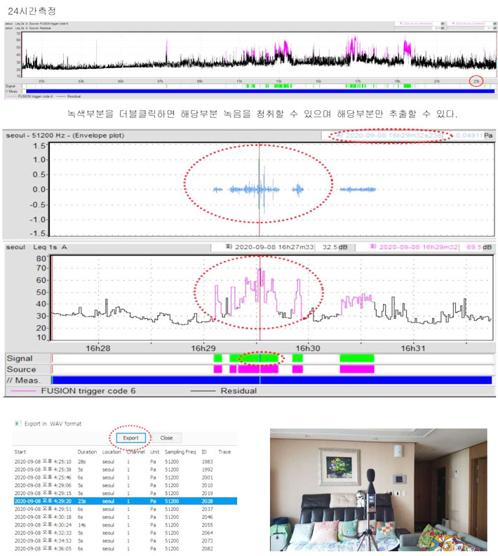 환경분쟁 자료(소음 피해자료) 24시간 소음도와 녹음 채증